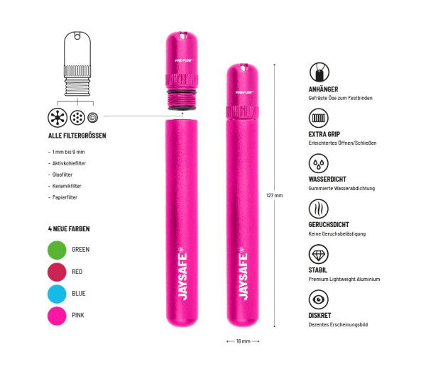 Gracias al innovador soporte de tapa del JAYSAFE®, todos los tamaños de filtro habituales, desde 1 mm hasta 9 mm de diámetro, se pueden fijar de forma segura en el JAYSAFE.
